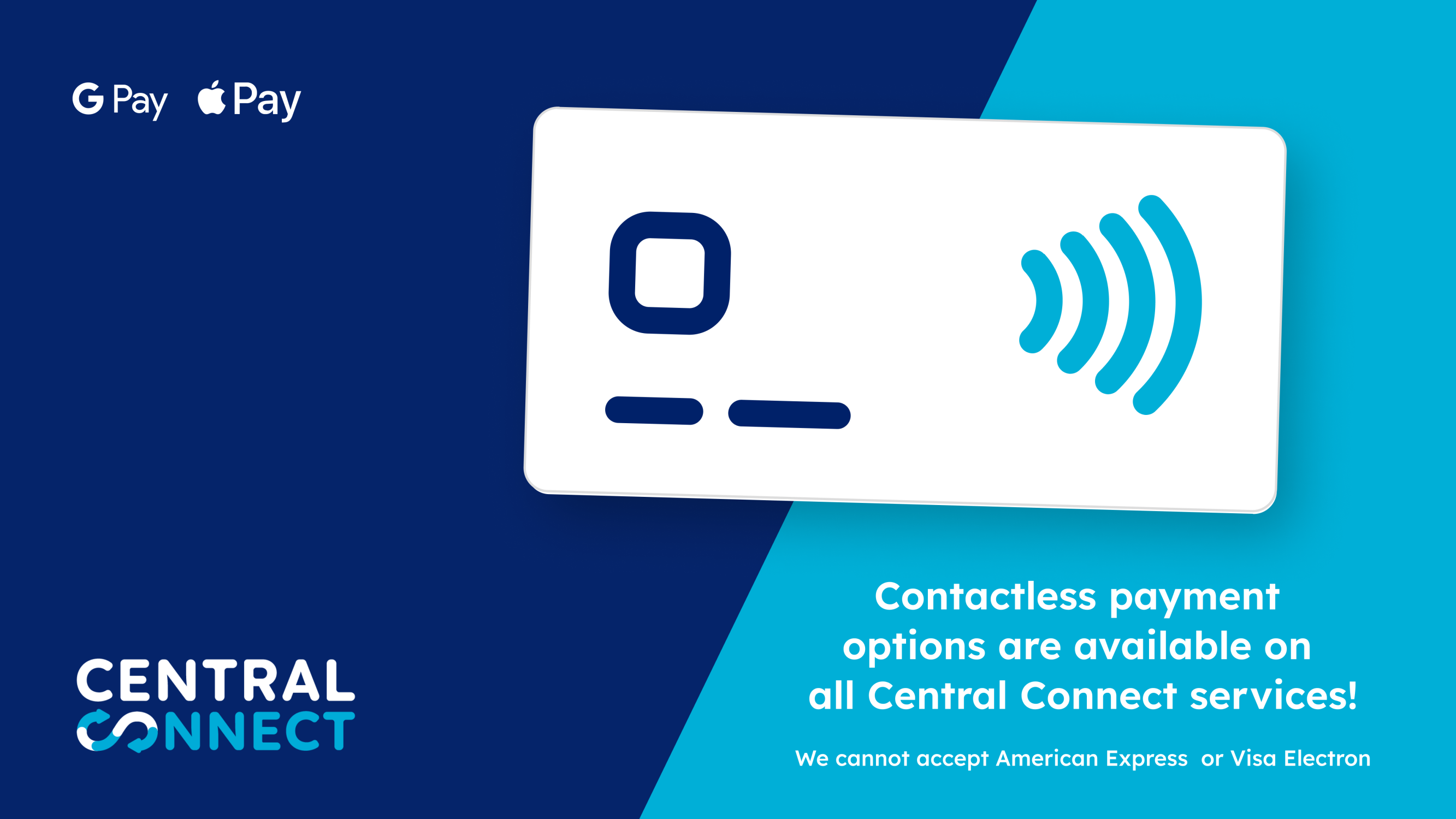 All Central Connect buses accept contactless payments for all tickets available to purchase on board. We accept all major credit and debit cards except for American Express. You cannot pay by chip and pin on our buses; your card must be a contactless-enabled card.