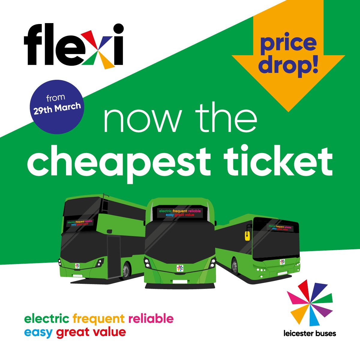 From Monday 29th March 2026 the prices of Leicester Flexi tickets are reducing with support from Leicester City Council. Passengers travelling with multiple operators or across multiple services will see prices fall meaning it's never been better to travel by bus.