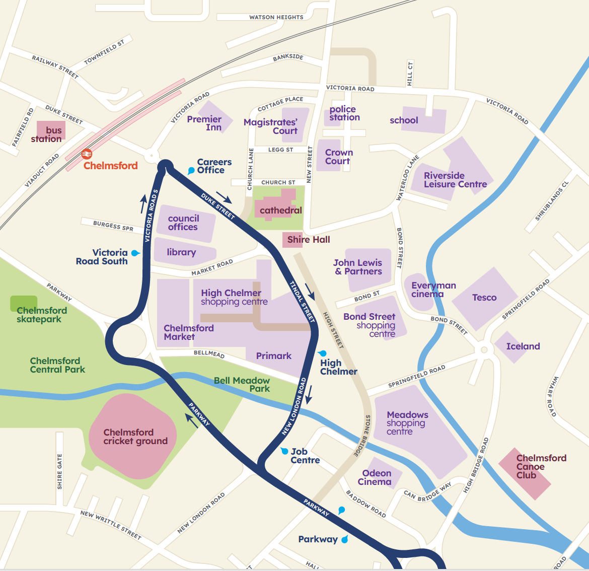 Located just off junction 18 of the A12, Sandon is served by Route 701 with buses operating up to every 7 minutes into Chelmsford at peak times. Within the City buses operate a loop from the Parkway to Victoria Road South to Duke Street (for the Station & Cathedral) to High Chelmer (for City Centre Retail & Leisure) to Job Centre back to Parkway.